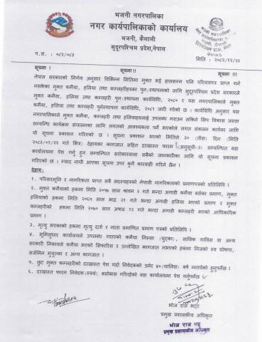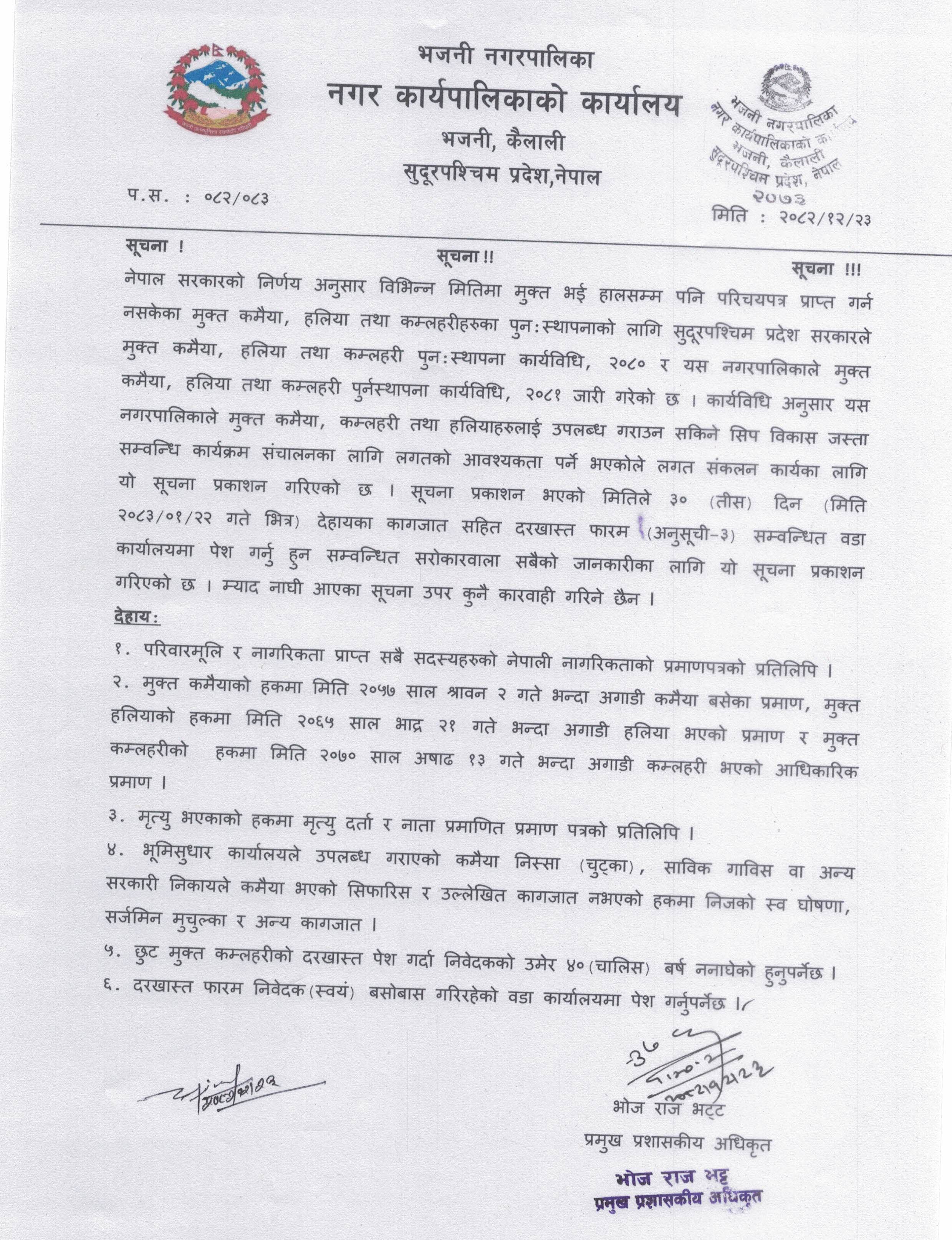 छुटेका मुक्त कमैया, हलिया तथा कम्लहरीहरुको पुनःस्थापनाको लागि ३० दिने सूचना ।