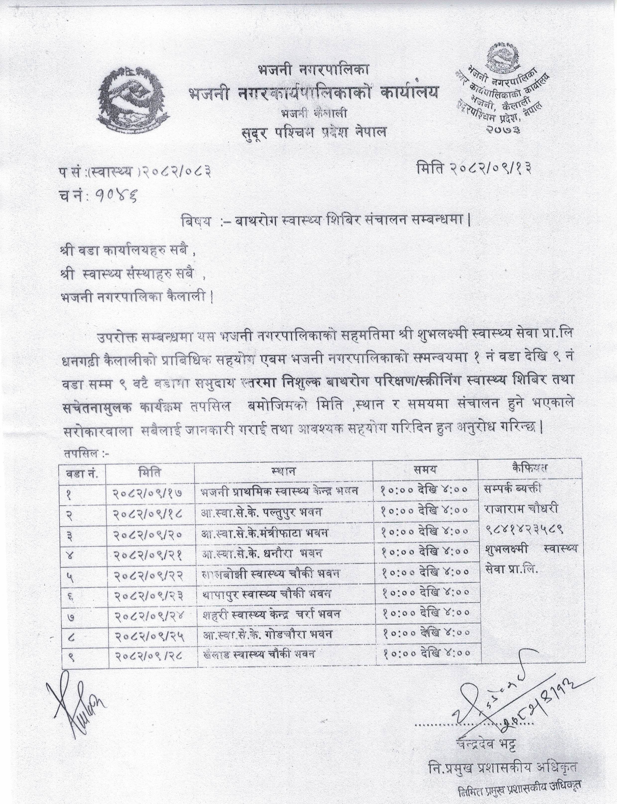 बाथरोग स्वास्थ्य शिविर संचालन सम्बन्धमा ।