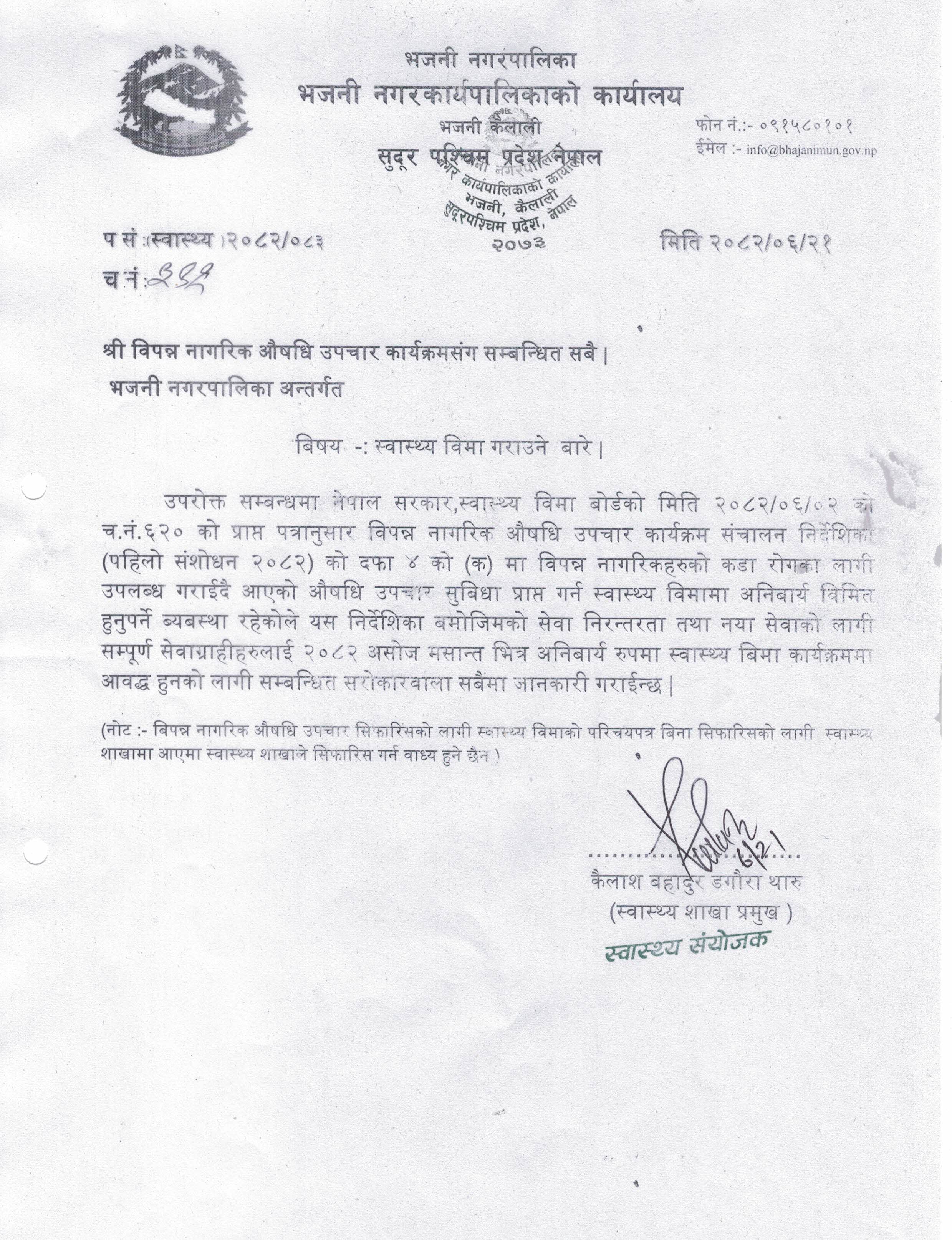 » विपन्न नागरिक औषधीउपचार सिफारिस सम्बन्धी सूचना ।