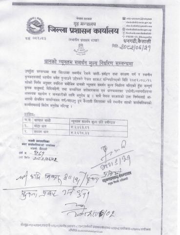जिल्ला प्रशासन कार्यालय धनगढी, कैलालीको न्यूनतम समर्थन मुल्य निर्धारण सम्बन्धमा ।