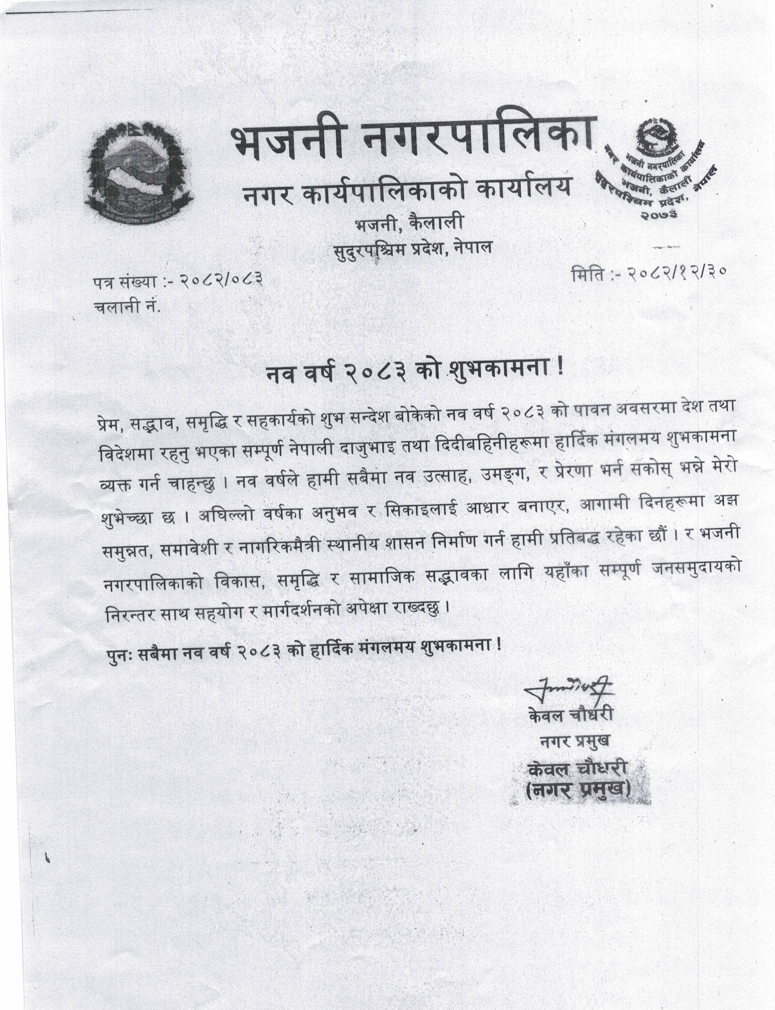 नव वर्ष २०८३ को शुभकामना ।