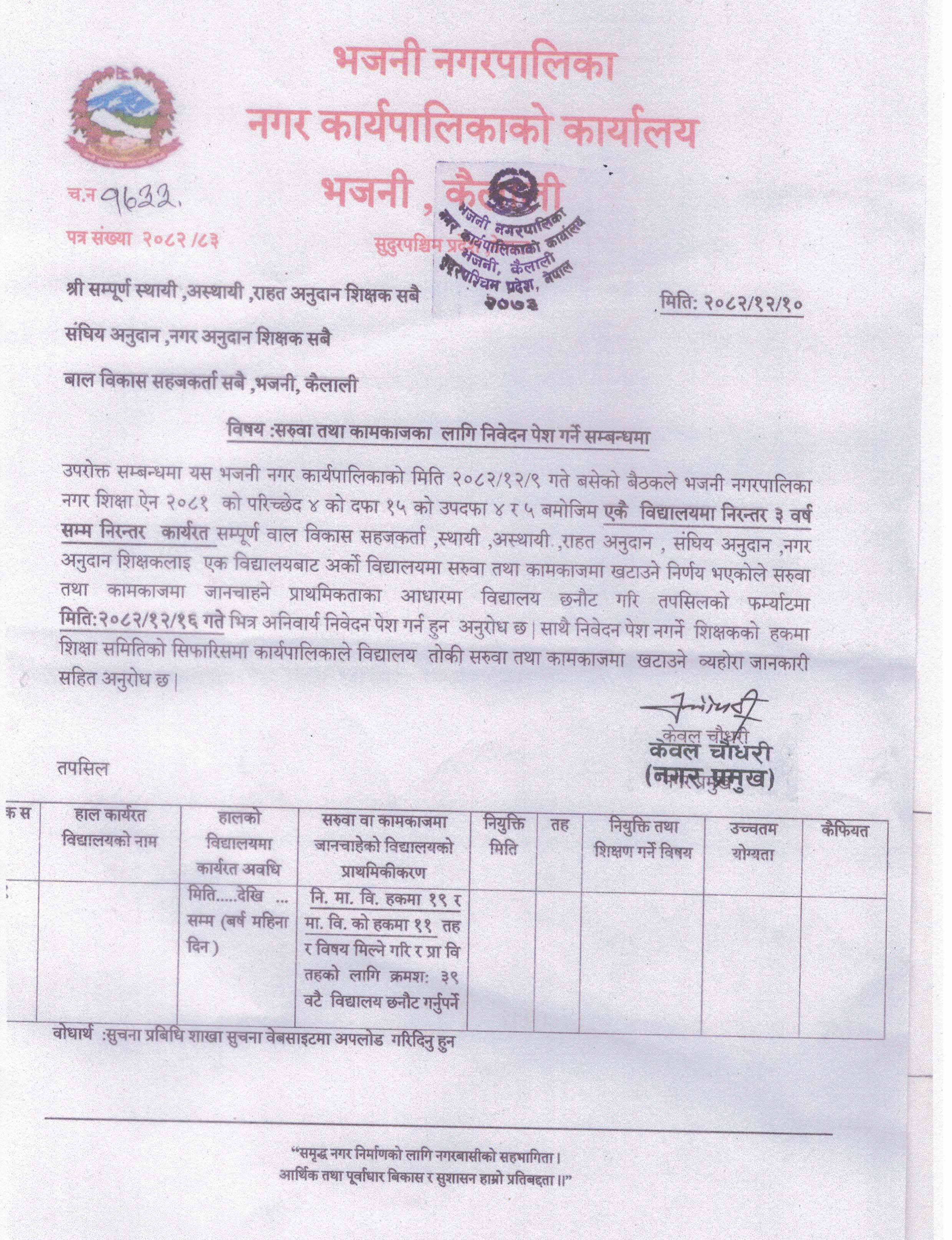 सरुवा तथा कामकाजका लागि निवेदन पेश गर्ने सम्बन्धमा ।