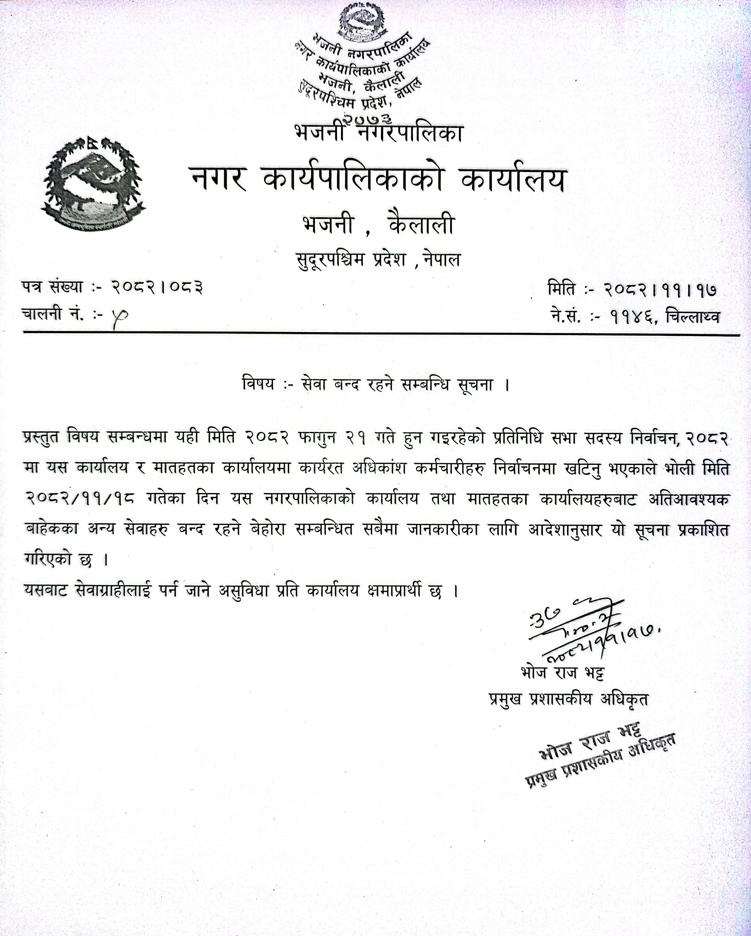 » सेवा बन्द रहने सम्बन्धि सूचना ।