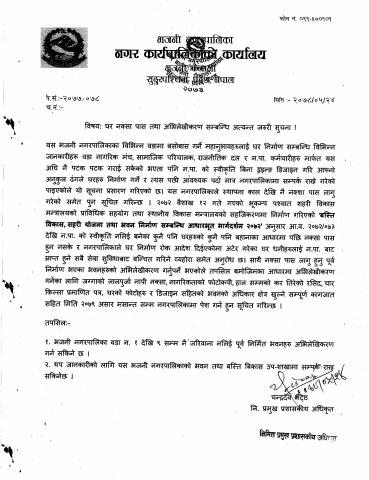 घर नक्सा पास तथा अभिलेखिकरण सम्बन्धी सूचना !!
