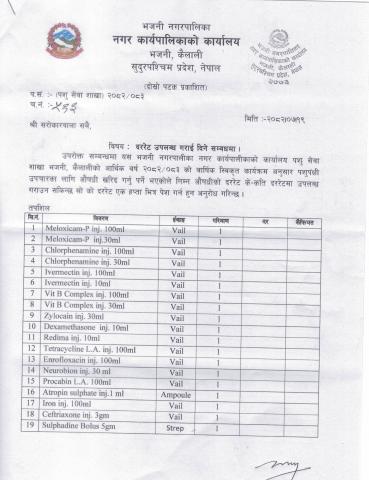 » पशु सेवा शाखाका लागि औषधीको दररेट उपलब्ध गराई दिने सम्बन्धमा ।