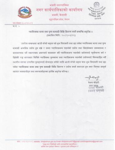 » प्लास्टिकका माला तथा पुष्प सामाग्री बिक्रि बितरण नगर्ने सम्बन्धि अनुरोध ।