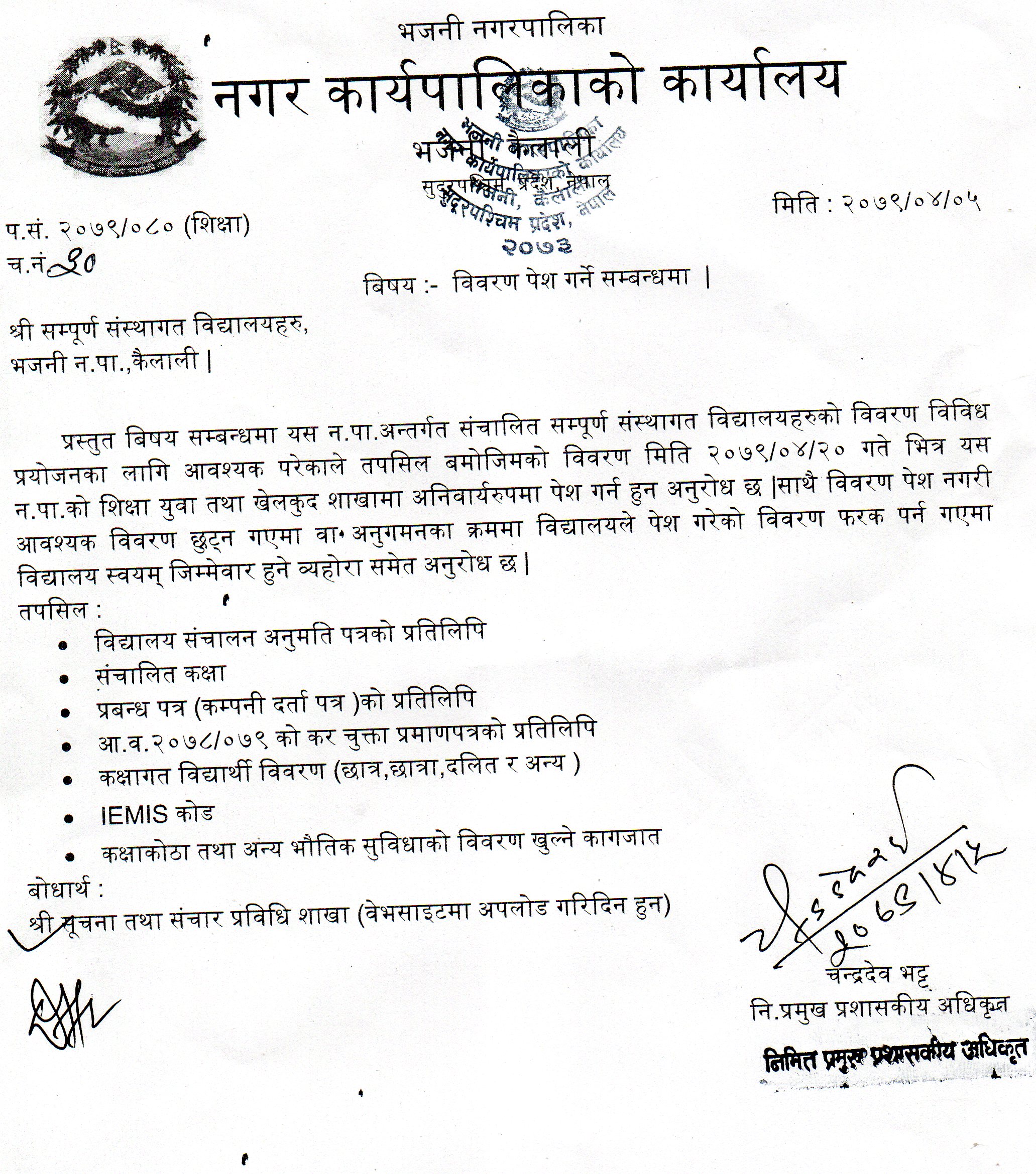 » विवरण पेश गर्ने सम्बन्धमा । (शिक्षा)