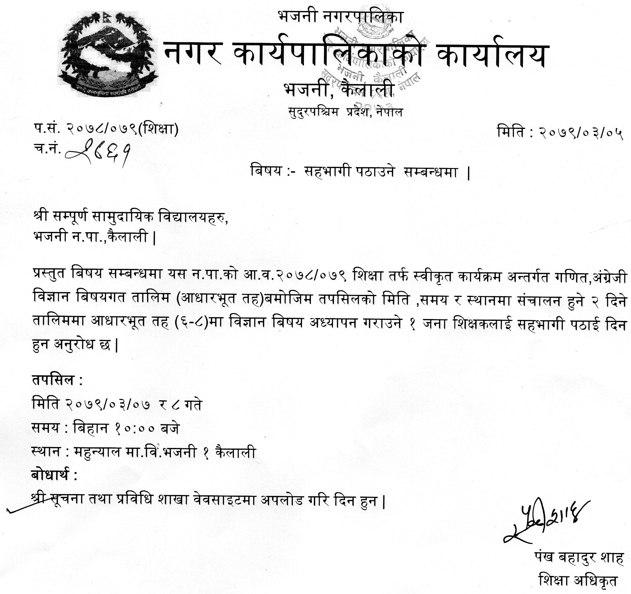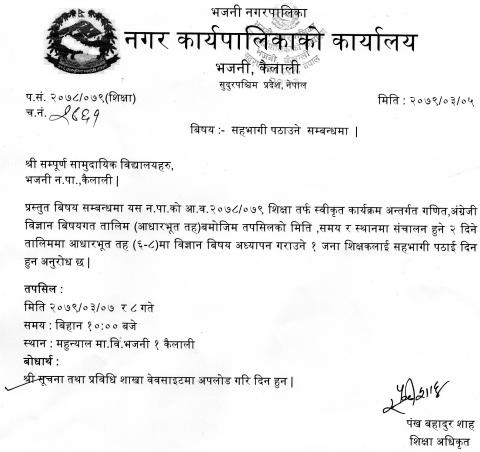 » सहभागी पठाउने सम्बन्धमा (शिक्षा शाखा)