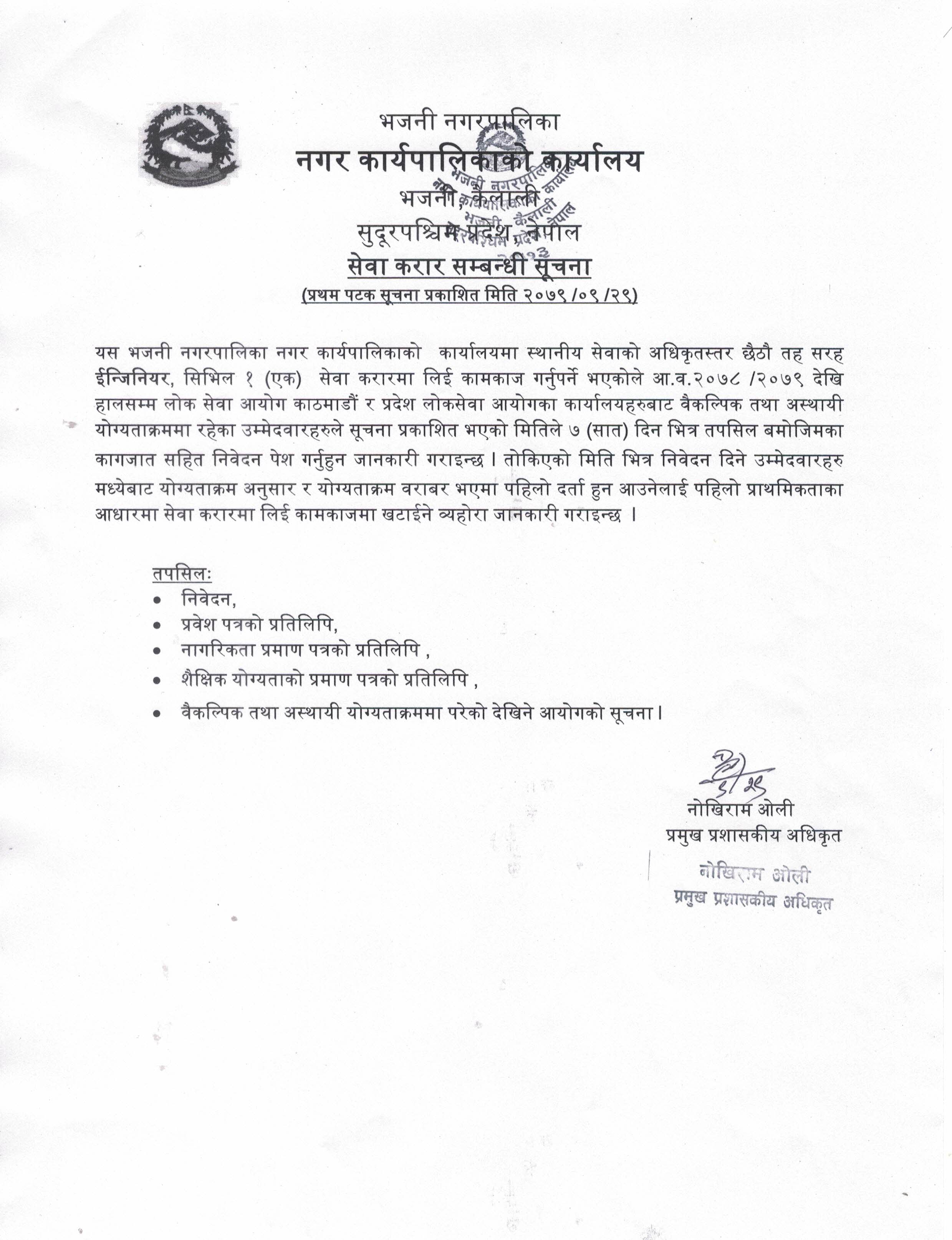 सेवा करार सम्बन्धी सूचना ।