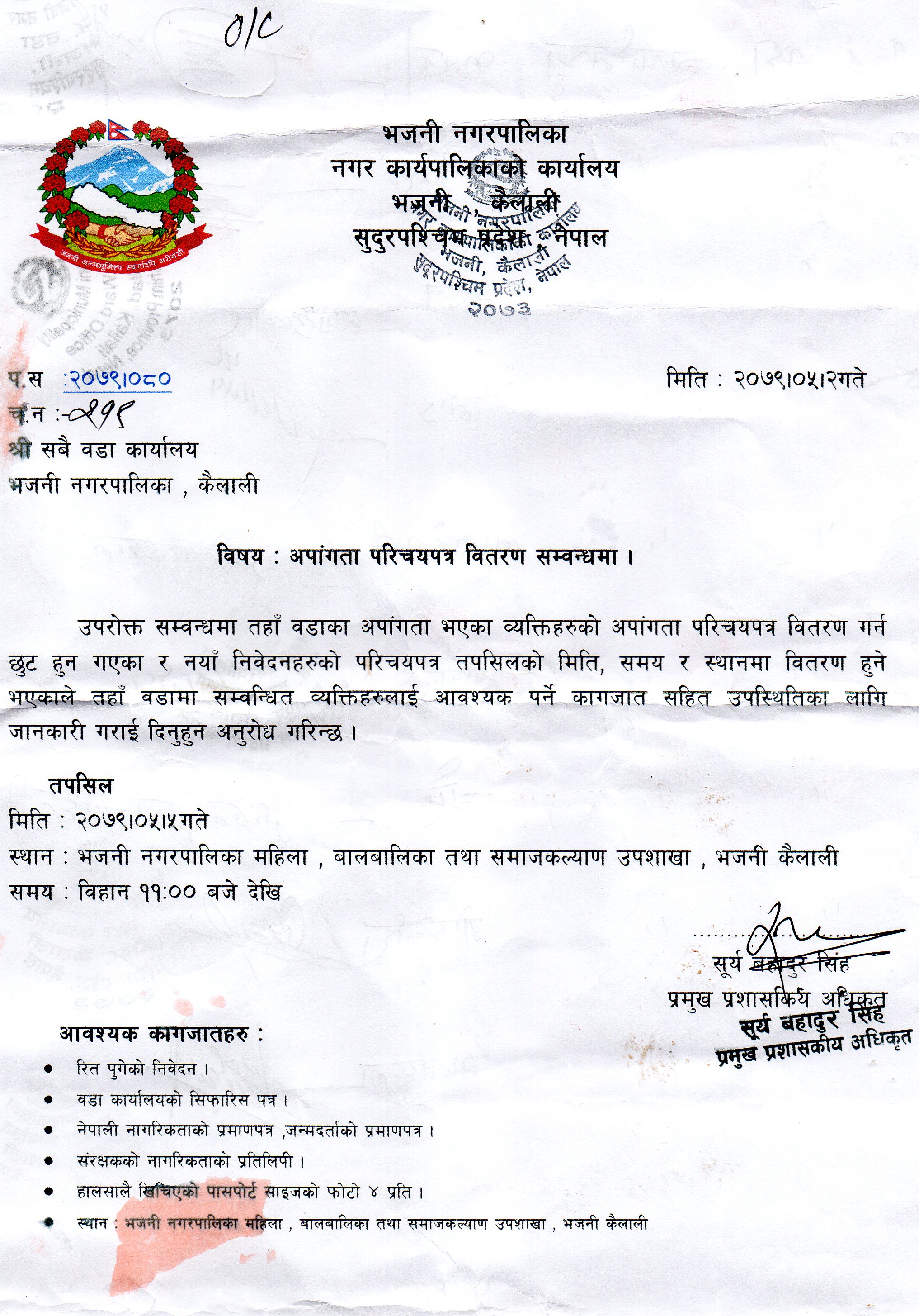 » अपांगता परिचयपत्र वितरण सम्बन्धमा ।