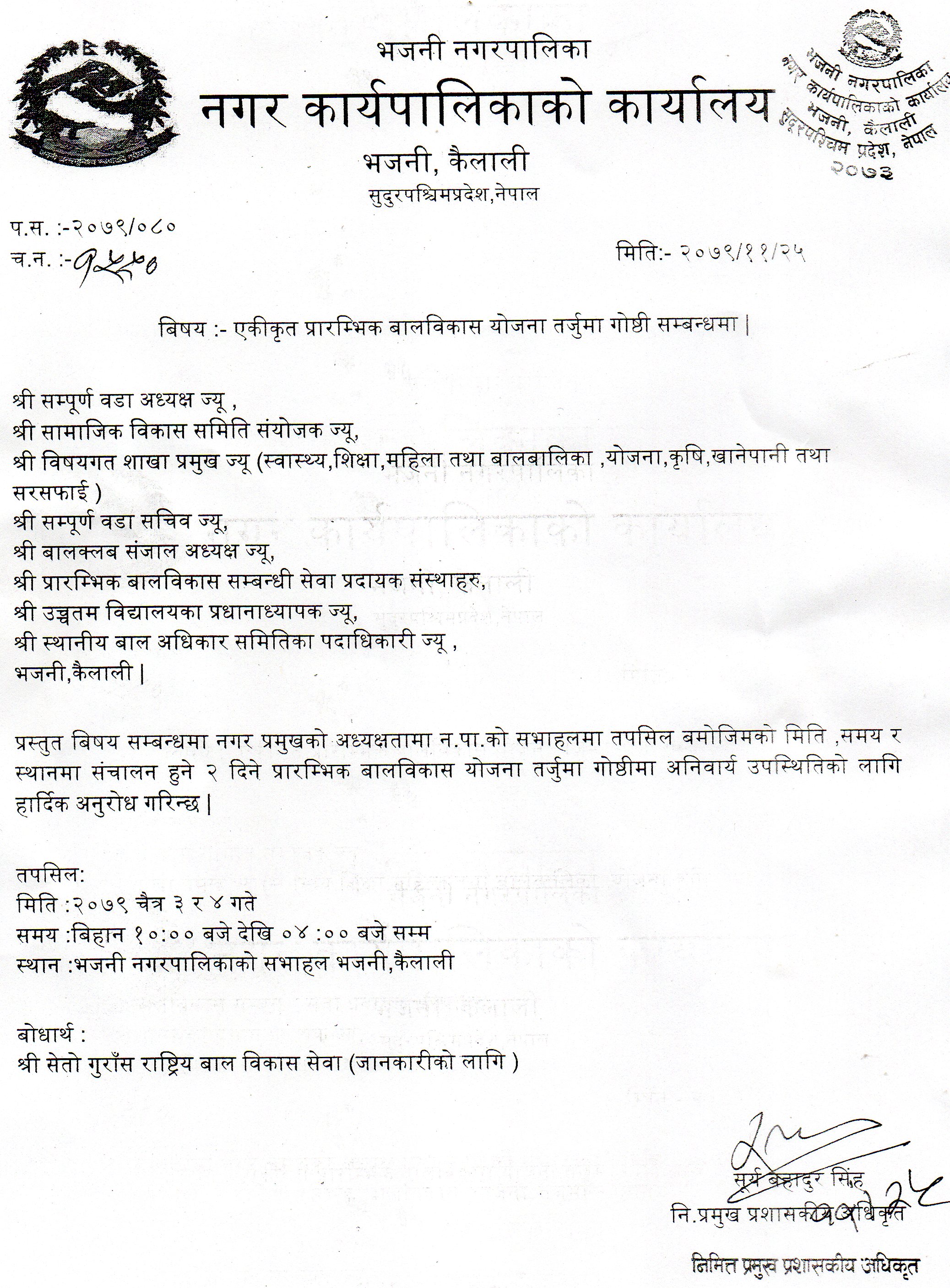 » एकिकृत प्रारम्भिक बालविकास योजना तर्जुमा गोष्ठी सम्बन्धमा ।