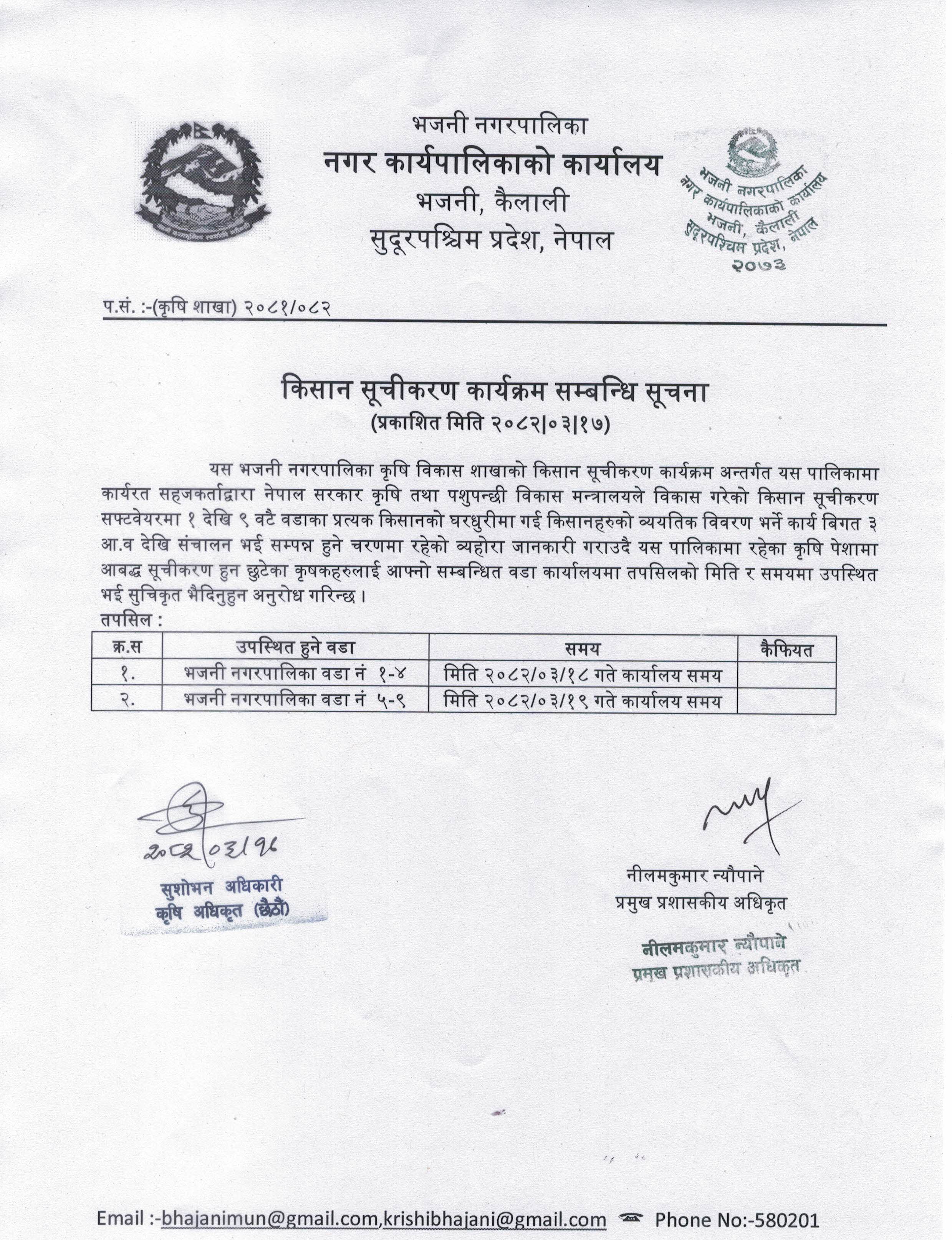 » किसान सूचीकरण कार्यक्रम सम्बन्धि सूचना ।