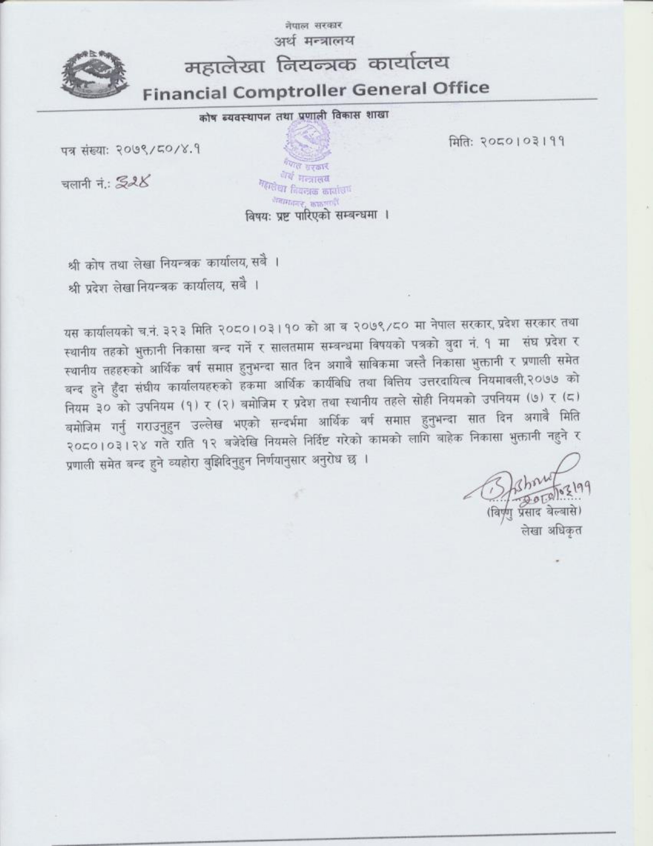 » खाता बन्दी सम्बन्धमा थप प्रष्ट्र पारिएको ।