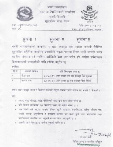 » खाद्यको काटा संचालन हुने सम्बन्धी सूचना ।