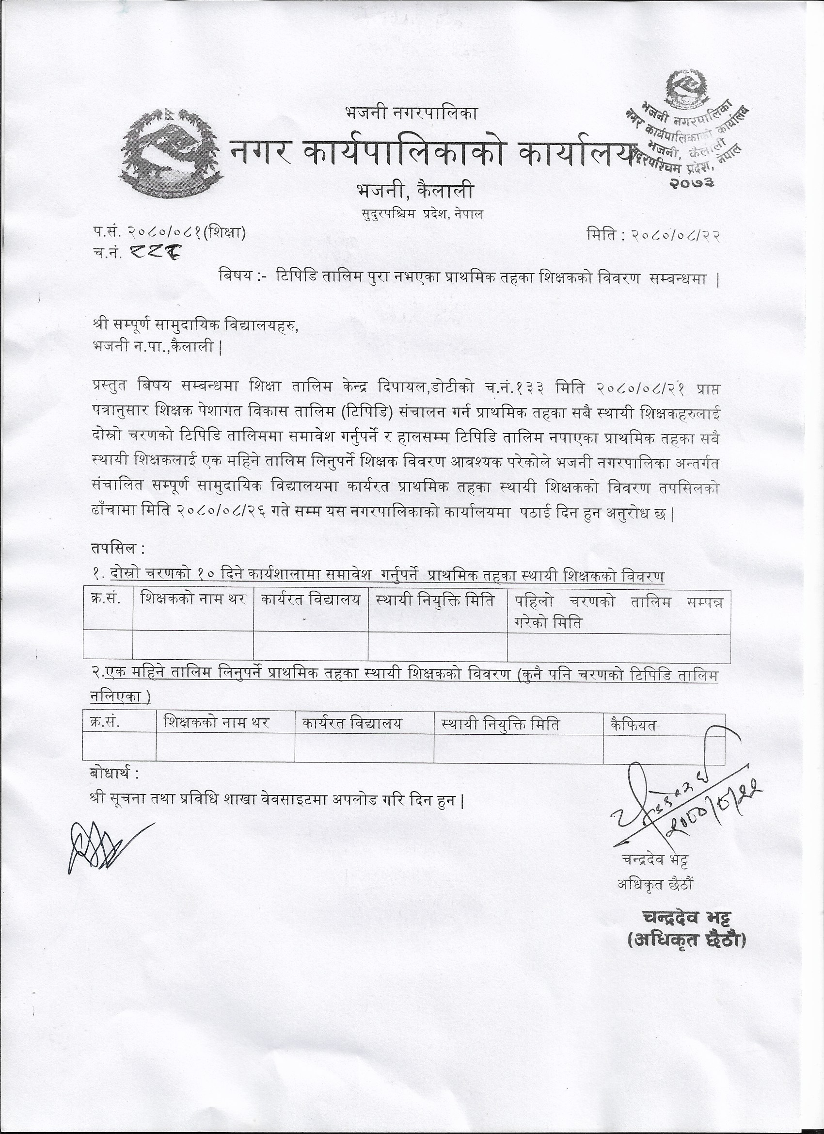 » टिपिडि तालिम पुरा नभएका प्रभमिक तहका शिक्षकको विवरण सम्बन्धमा ।