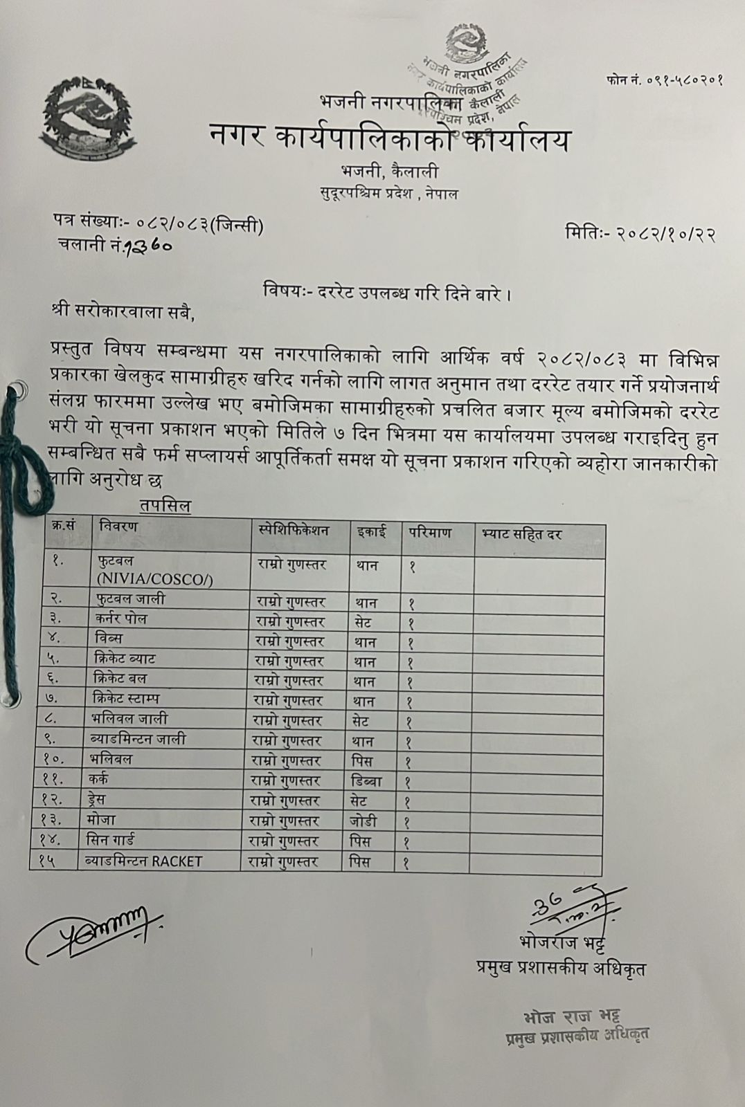 सार्वजनिक खरिद / बोलपत्र सूचना