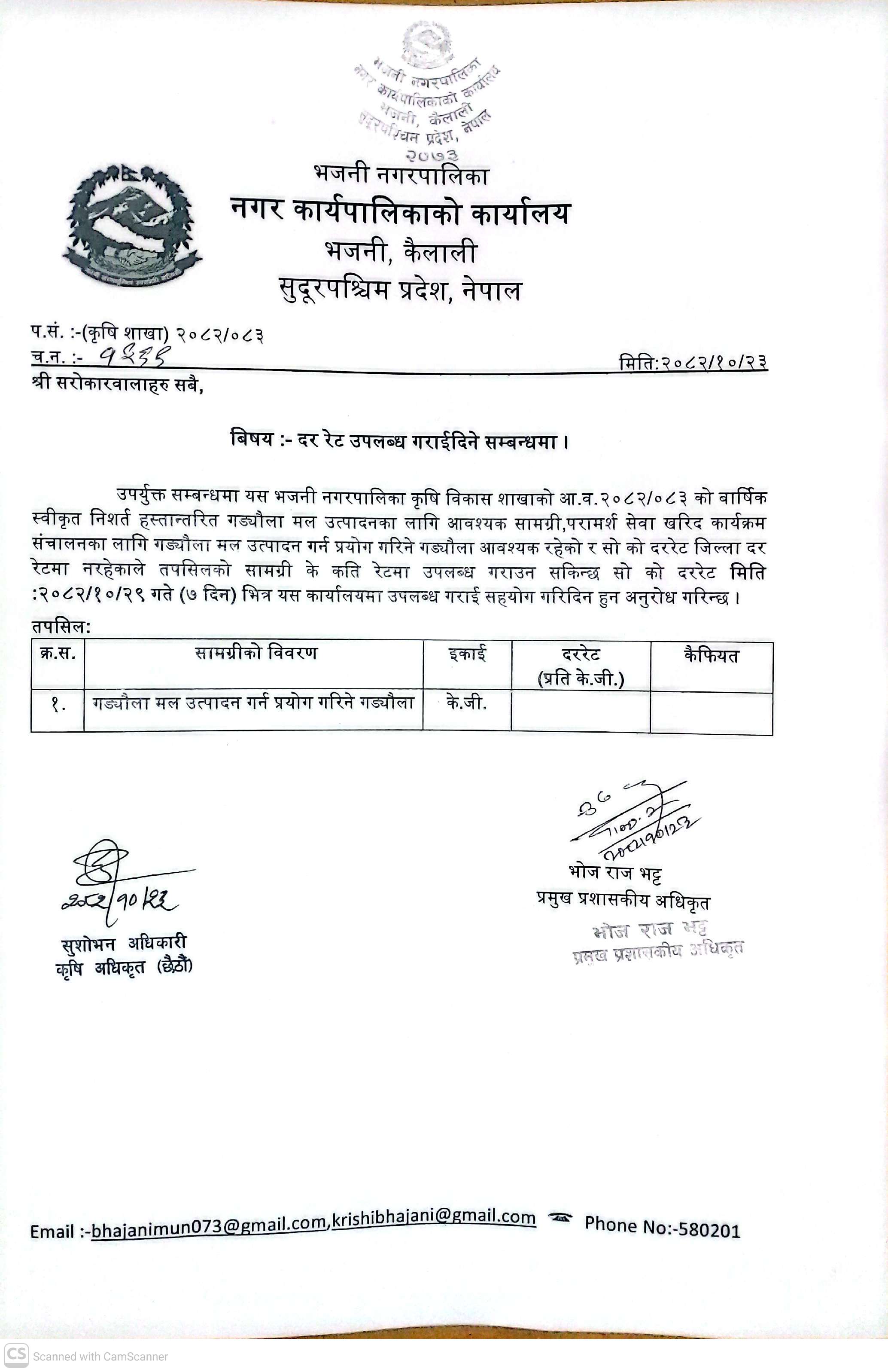 » दररेट उपलब्ध गराई दिने सम्बन्धमा । (कृषि शाखा)