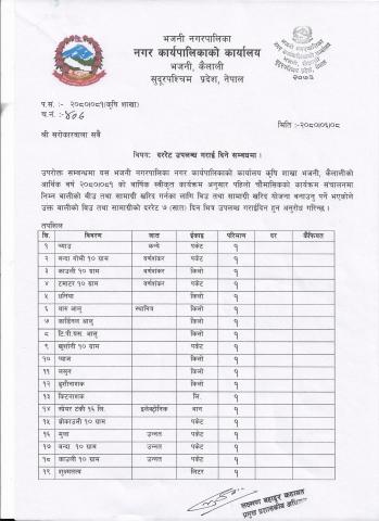 दररेट उपलब्ध गराईदिने सम्बन्धमा (कृषि शाखा) ।