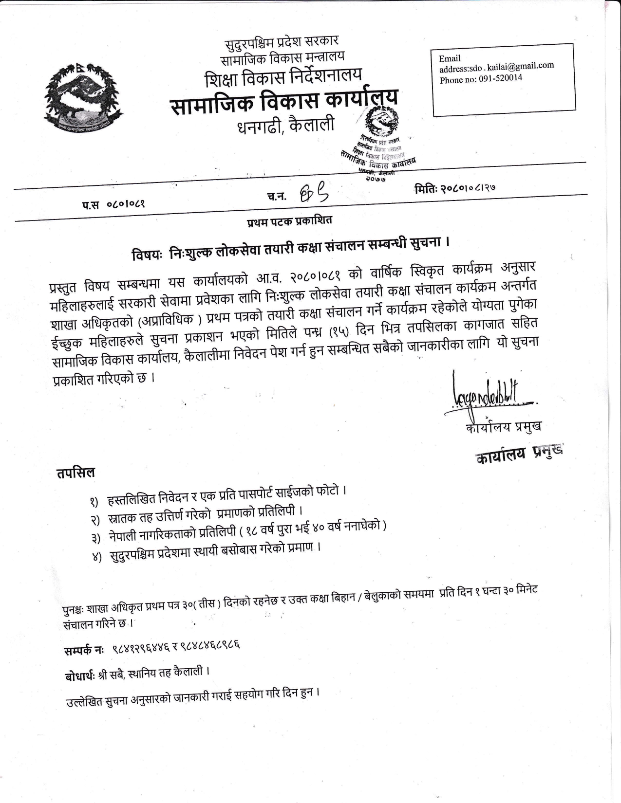 निःशुल्क लोकसेवा तयारी कक्षा संचालन सम्बन्धी सूचना ।