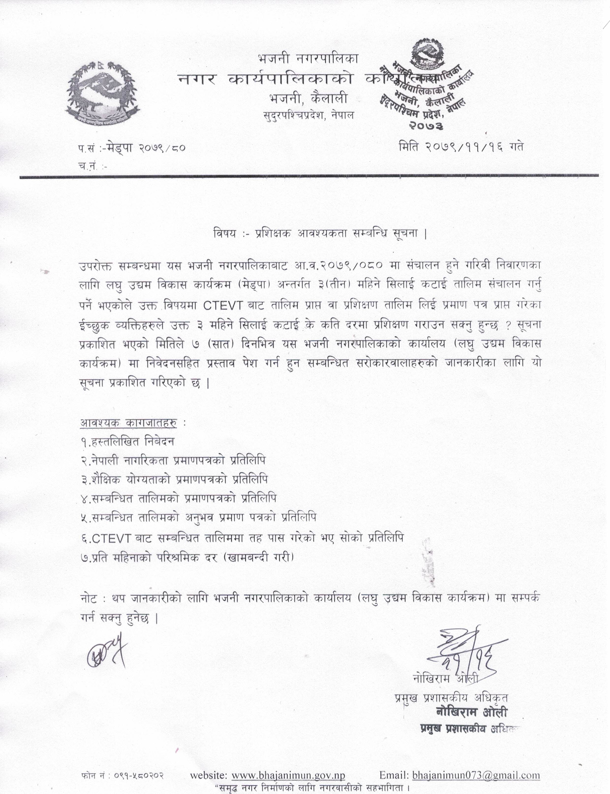 » प्रशिक्षक आवश्यक सम्बन्धि सूचना ।