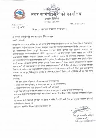 बिद्यालय संचालन सम्बन्धमा ।