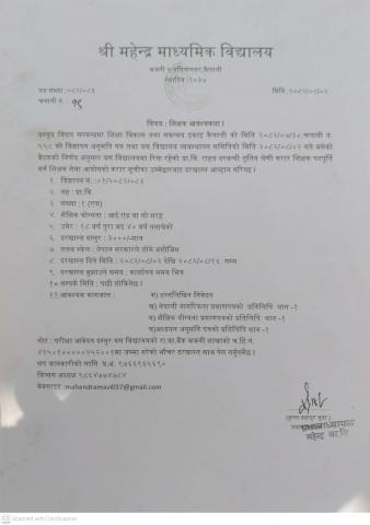 » श्री महेन्द्र माध्यमिक विद्यालय, भजनी-५ पगियापसर, कैलालीको शिक्षक आवश्यकता सम्बन्धी सूचना ।