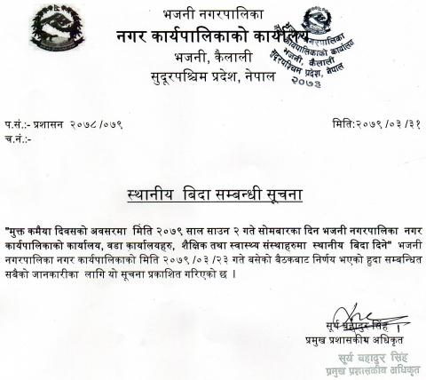 स्थानीय बिदा सम्बन्धी सुचना ।
