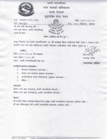 » १९ औं नगरसभा बैठकमा उपस्थित भई दिन हुन ।