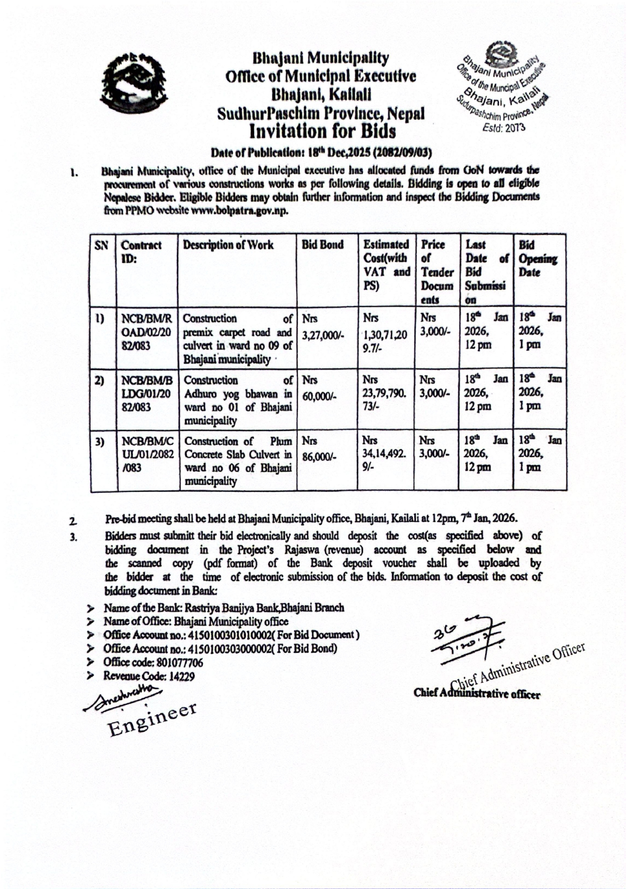 सार्वजनिक खरिद / बोलपत्र सूचना