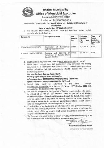 सार्वजनिक खरिद / बोलपत्र सूचना